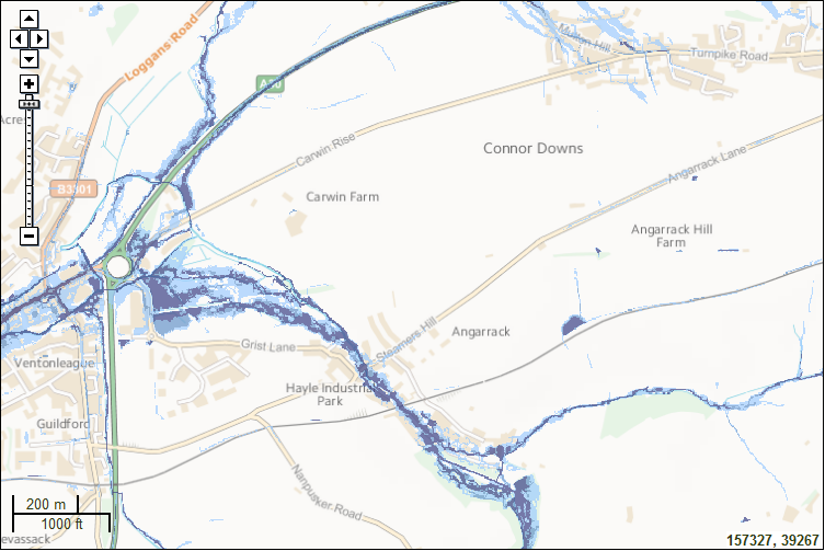 The shading on the map shows the risk of flooding from surface water in this particular area.