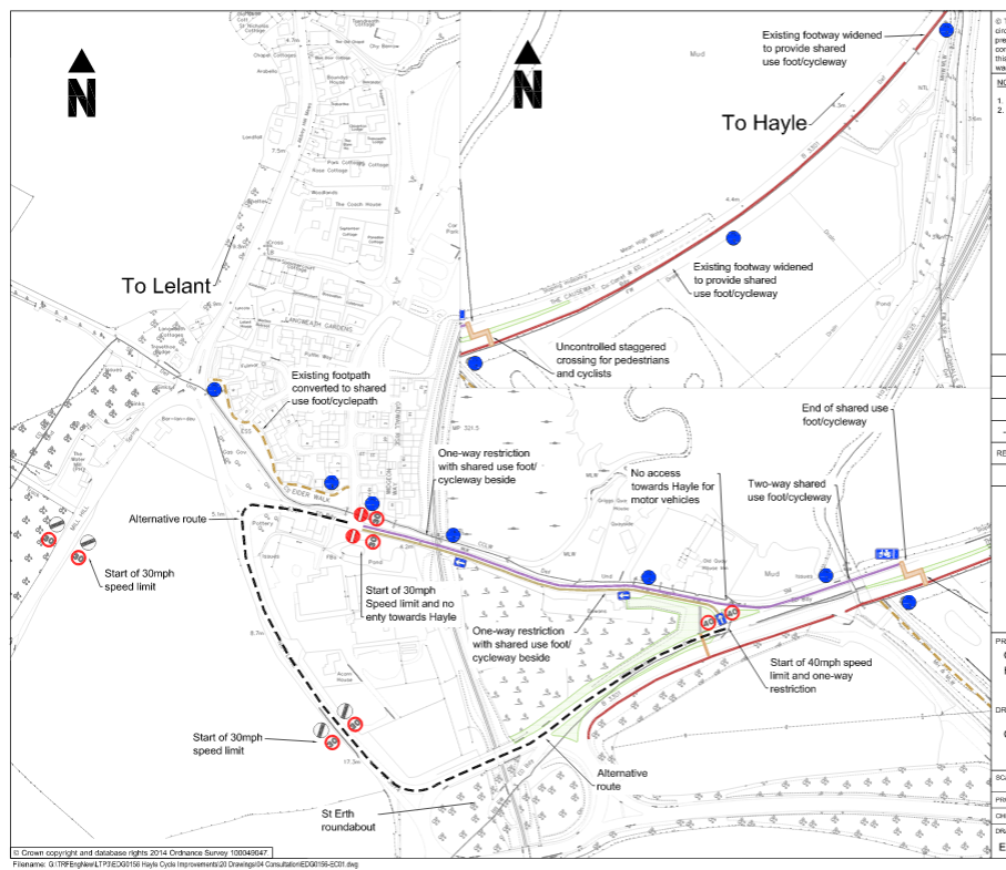 Cornwall Council is proposing to provide improved cycle and pedestrian access along Hayle Causeway to Lelant with shared use facilities and Traffic Regulation Orders.