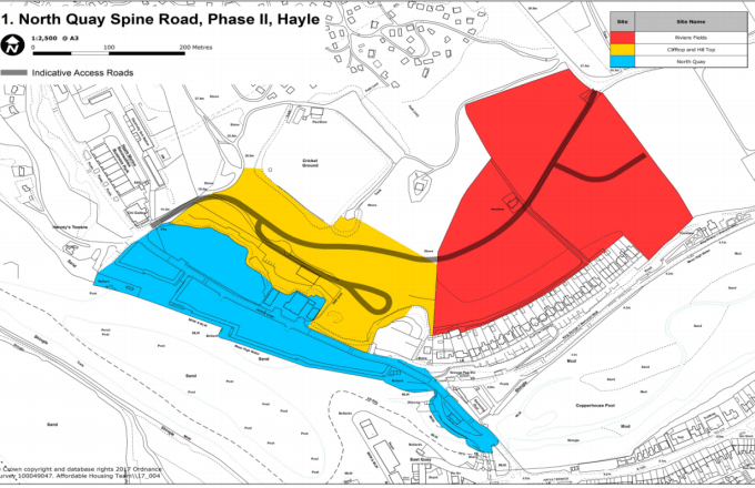 These spaces are prepared for flats, shops, restaurants to be built on but the private developers have stalled The project would use £15.76m of the Council’s Capital Programme to acquire land at Riviere Fields, Hayle, – red on the diagram – and to cover the acquisition, infrastructure and associated pre-development costs.