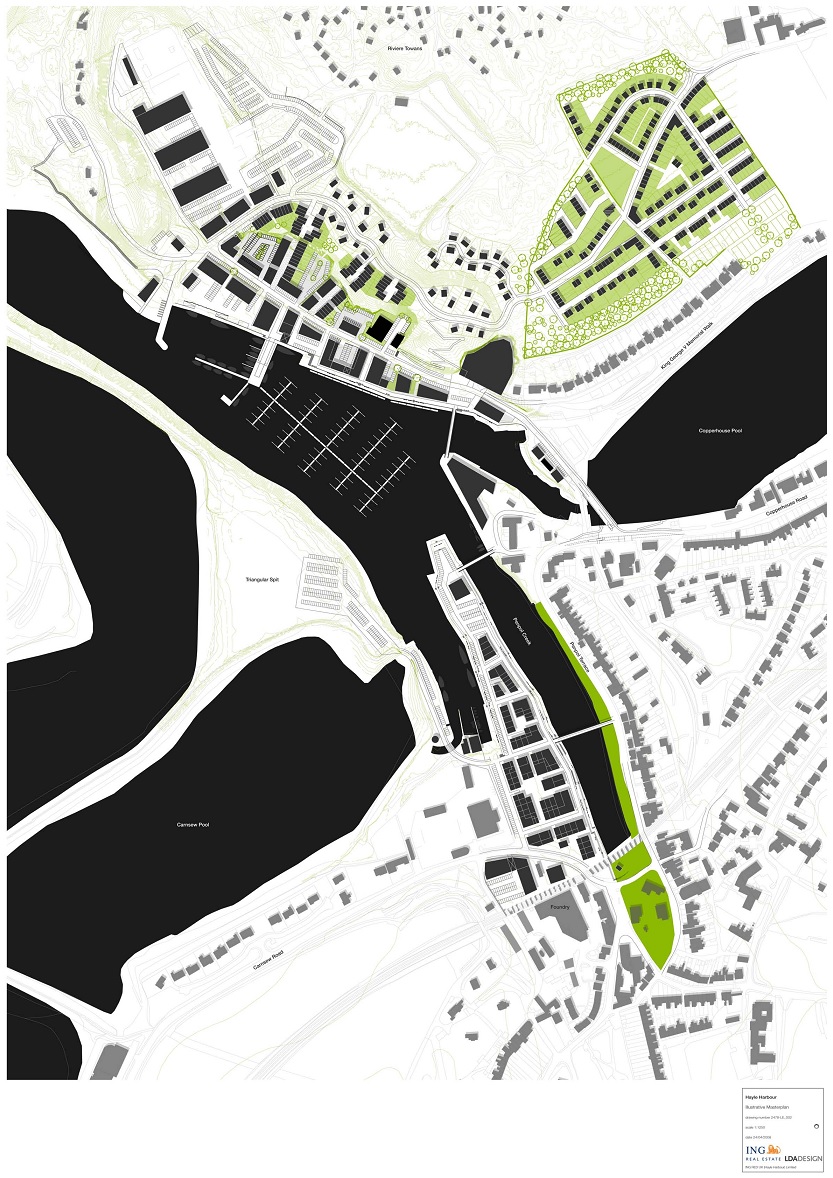 W1/08-0613 | Redevelopment of harbour and land to north and north east to provide a mixed use development incorporating retail space, business space, residential, general industrial, storage & distribution, creation of marina and commercial harbour & associated access works. (this proposal affects the setting of listed buildings) | Hayle Harbour North Quay Hayle Cornwall TR27 4BL