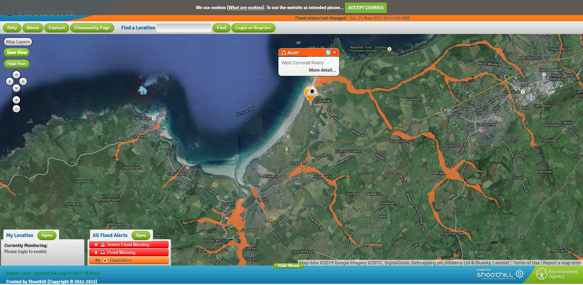 Flood status last changed: Tue, 25 Aug 2015 16:21:00 GMT West Cornwall Rivers