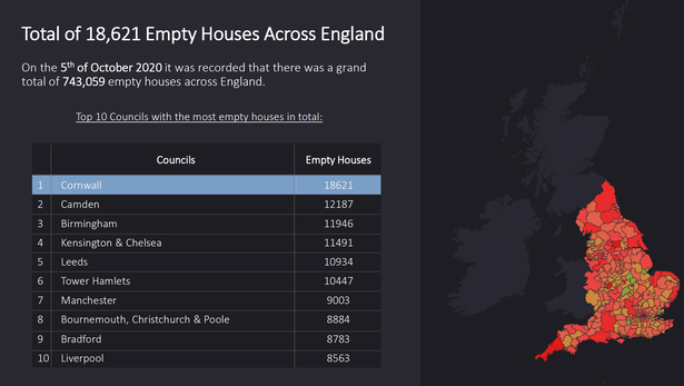 While Cornwall, as a unitary authority, is one of the bigger areas on the list population wise, the number of empty houses proportionate to population in Cornwall is around three times as many compared to large areas like Birmingham and Leeds.