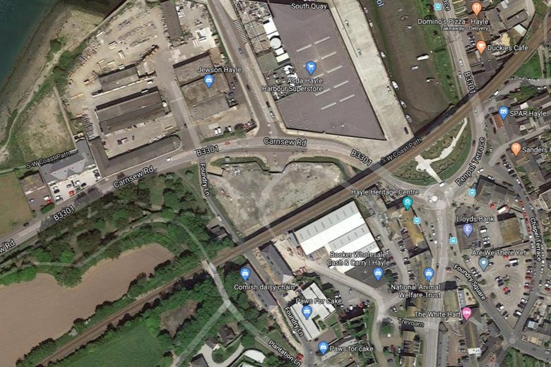 The site already has planning permission for three shops as well as outline permission for a mixed use development as part of the wider Hayle Harbour plans. However both those proposed developments have not moved forward.