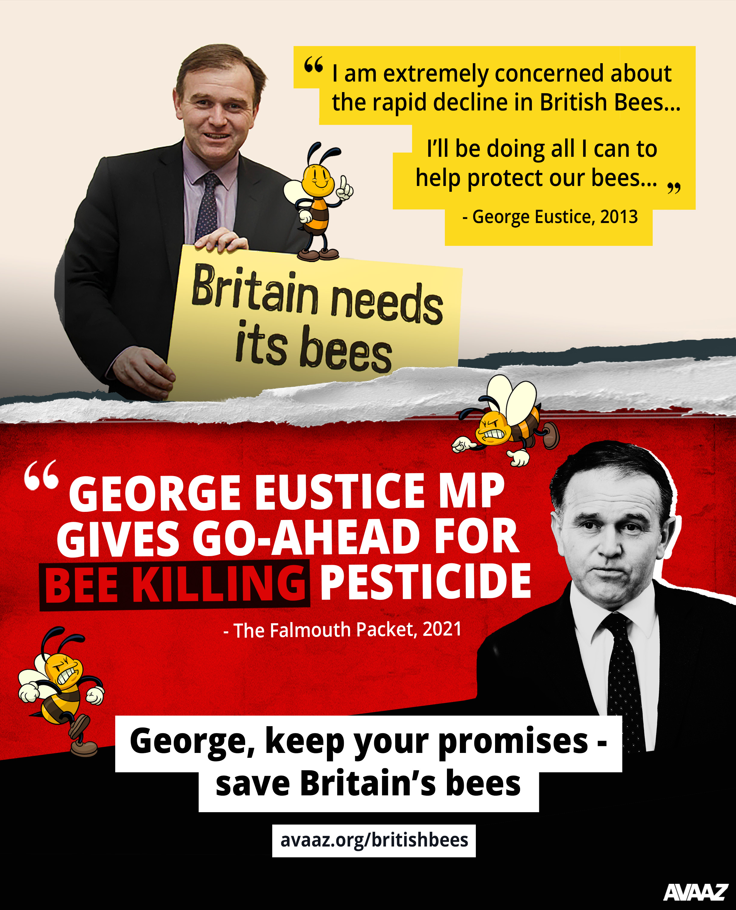 Britain is breaking its promise of better bee protections by allowing a bee-killing poison banned in the EU to be used on our fields! This U-turn puts the powerful sugar lobby above pollinators already in crisis -- we cannot stay silent. Let’s build a new massive buzz to save our bees, and Avaaz will deliver our voices to Environment Secretary George Eustice, putting him on the spot.