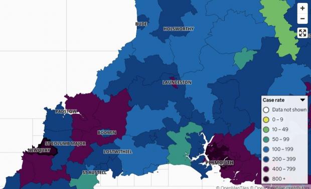 Other areas which have seen an increase in the infection rate from the day before include Bude & Stratton, Launceston, and Perranporth & Goonhavern.