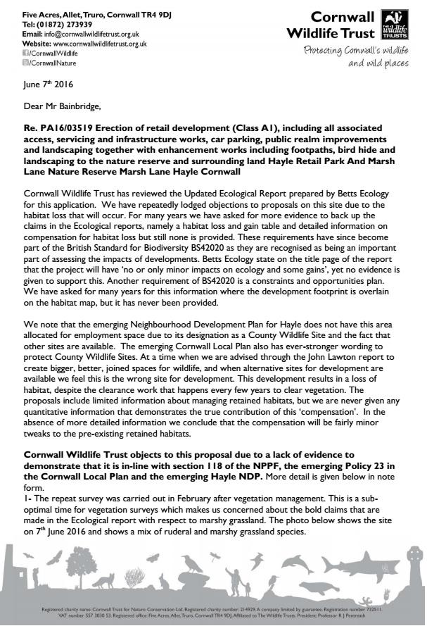- Cornwall Wildlife Trust response | PA16/03519 | Cranford Development Marsh Lane