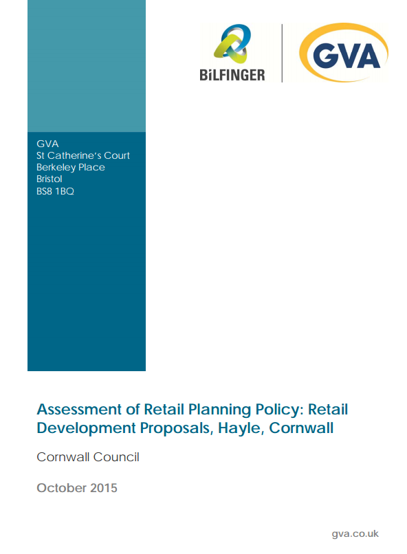 - GVA - Assessment of Retail Planning Policy: Retail Development Proposals, Hayle, Cornwall Cornwall Council October 2015