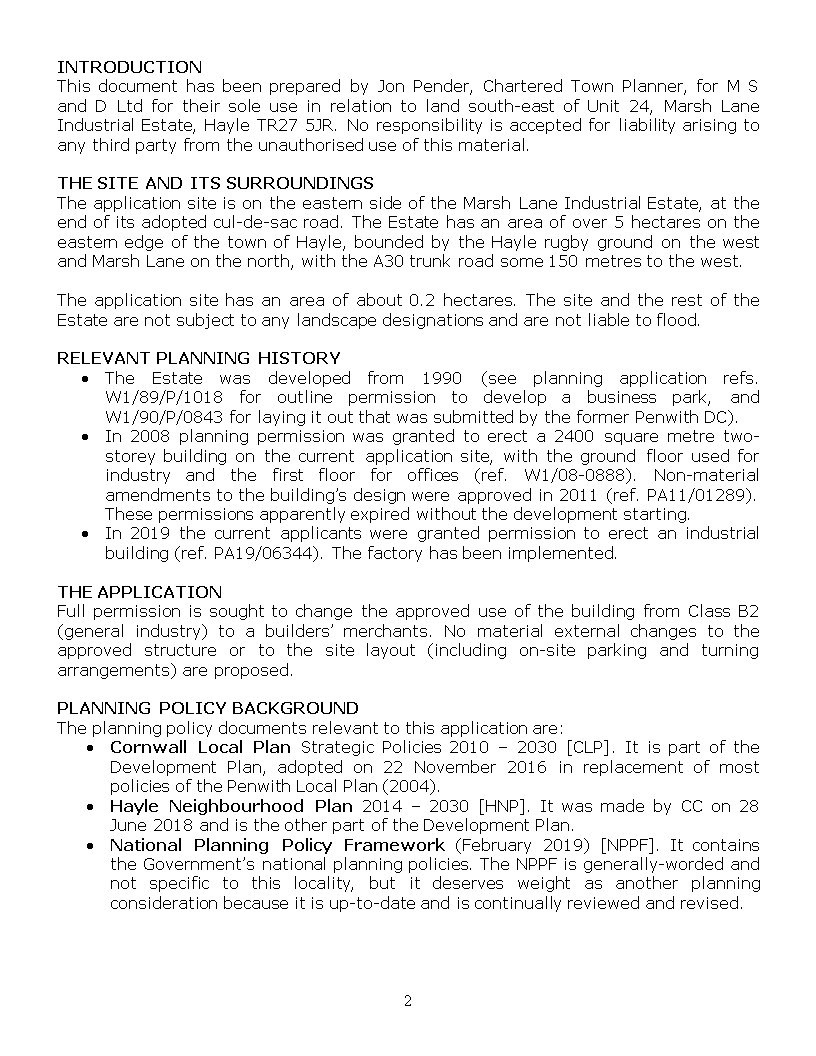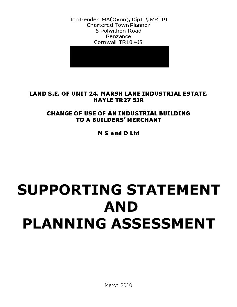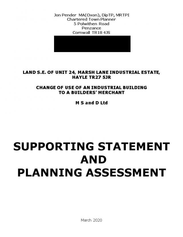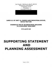 PA20/03108 | Proposed change of use from industrial building to builders merchant | Supporting Statement Planning Assessment
