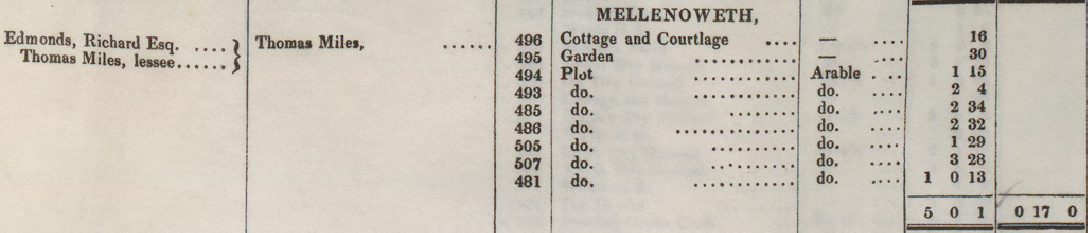 1842 Tithe | T496,495,494,493,485,486,505,507,481 Thomas Miles