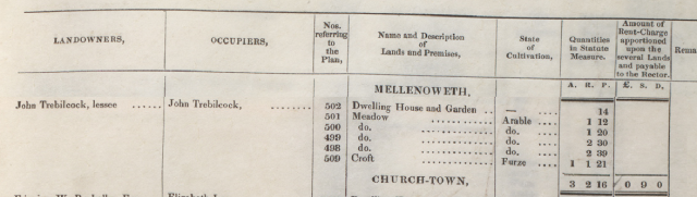 1842 Tithe | T502,501,500,499,498,509 Dwelling House and Garden,Meadows,Croft John Trebilcock